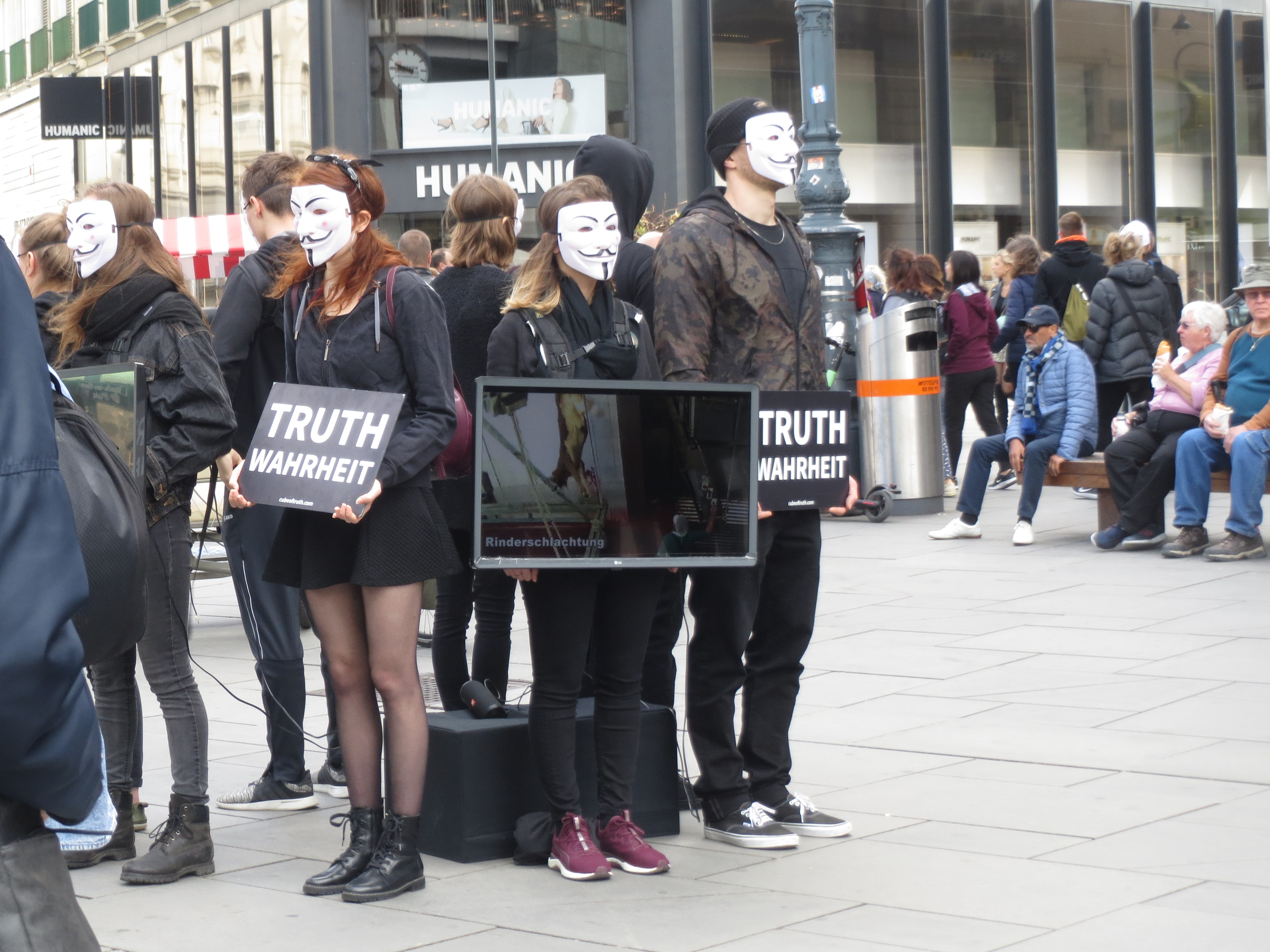 With help from google translate, i now think these people were protesting the meat industry, though i'm not sure we got that at the time |