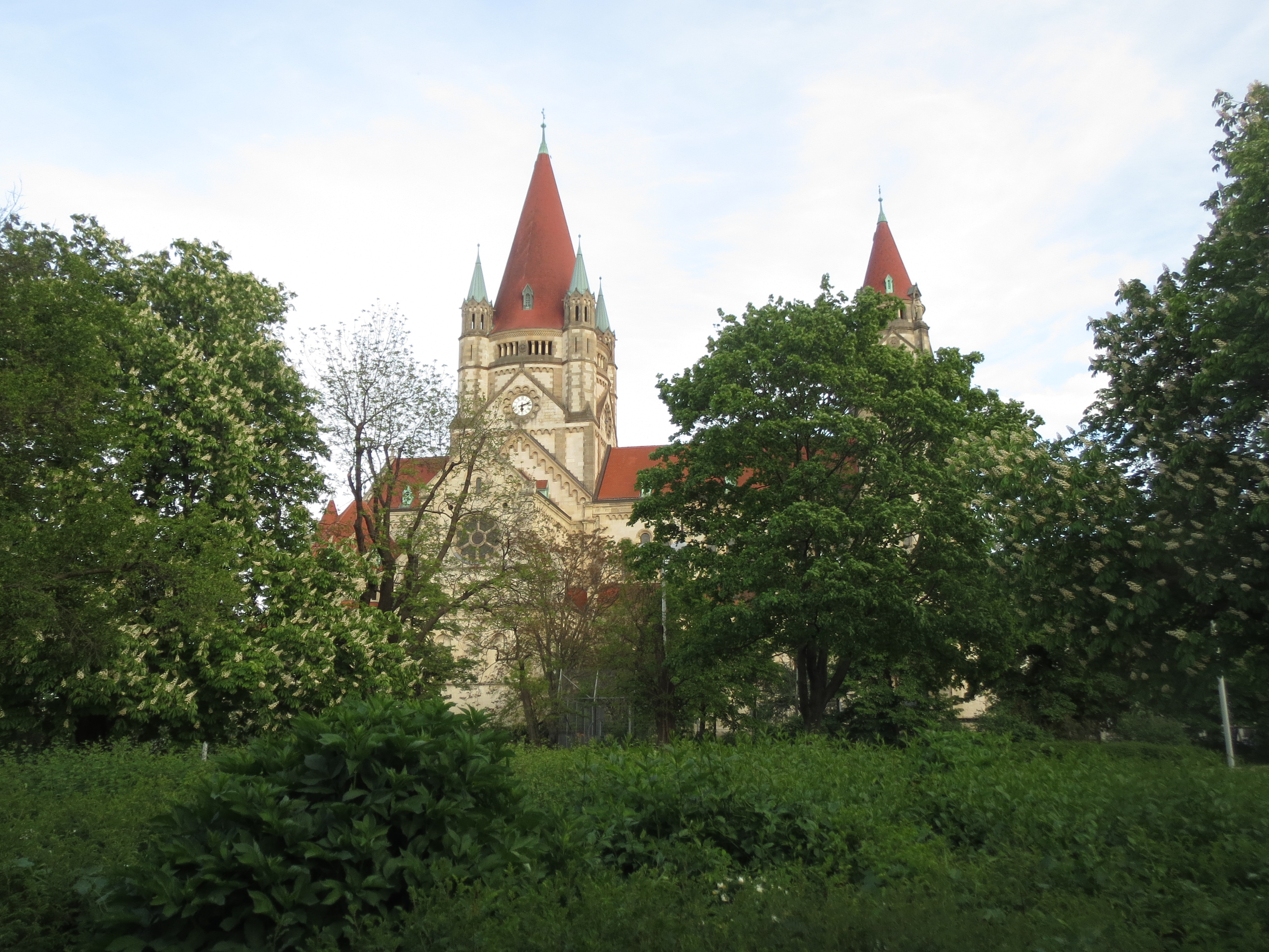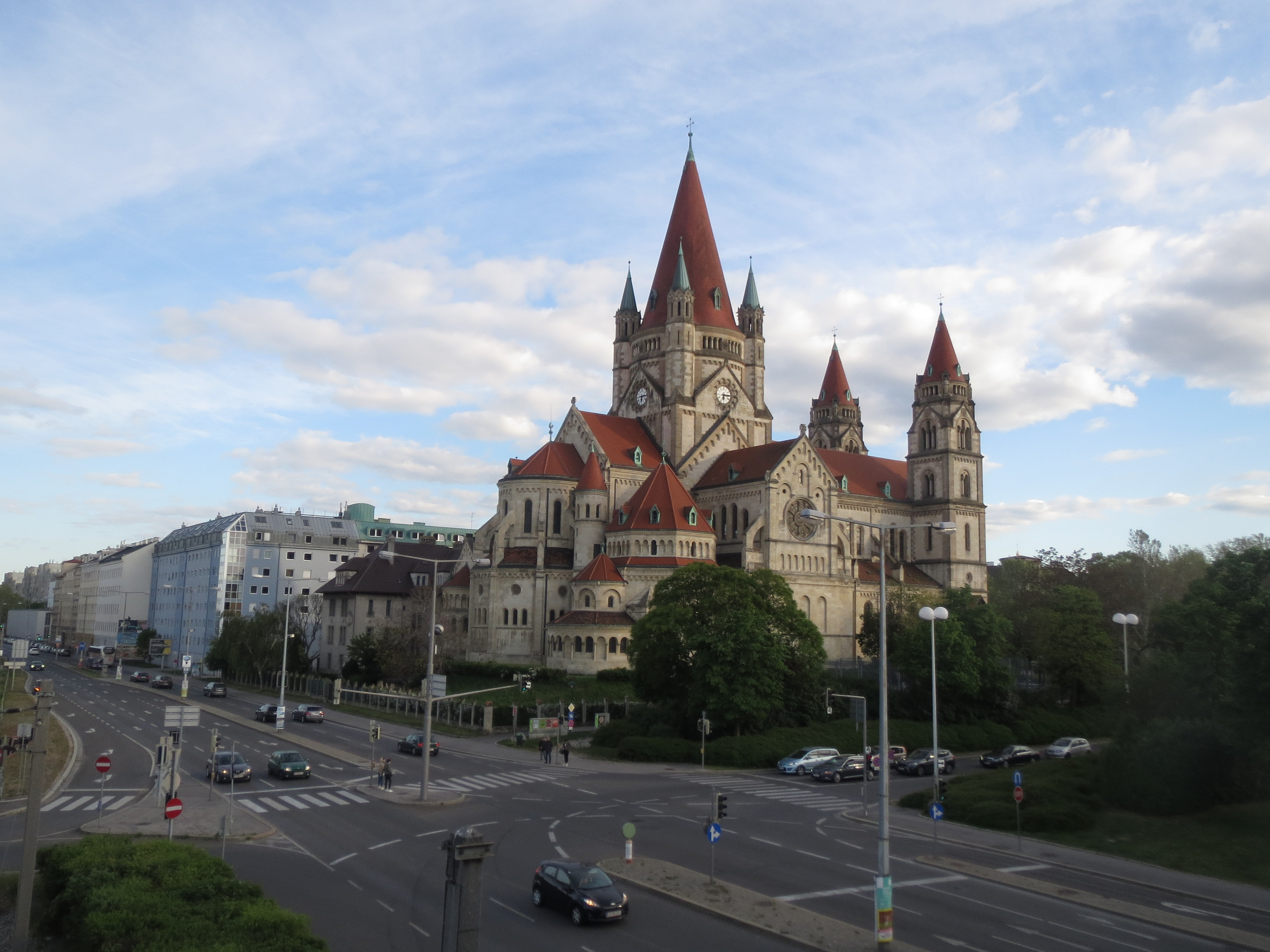 We spent the day walking around Vienna. First stop was the Vienna Boys Choir. The singing was good, but the whole experience was weird, from being put in a weird side room where we couldn't actually see what was going on, to an offhanded anti-Jewish line in the homily. After that, we spent a few hours at Stephansdom, which i remember fondly from a childhood trip to Vienna, and where we went up the tower and down the crypt with its bones from 12th century mass graves. After that we got a lunch of smørrebrød, and walked to Hundertwasserhaus, a conceptual apartment building with lots of interesting exterior art. Then several of us walked up to get our first views of the Danube itself, which we expect to be following for the rest of the trip. We walked around some after that, and had a late dinner at a vegetarian-adjacent place with lots of fun dishes and an interesting liqueur menu.