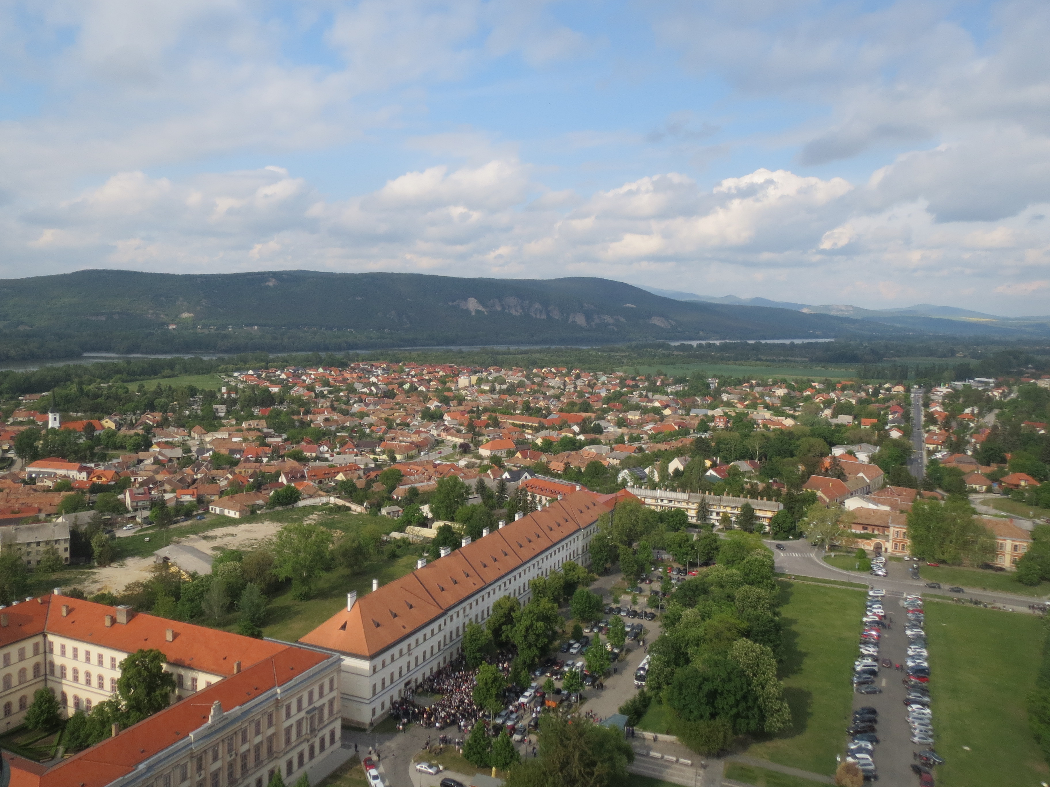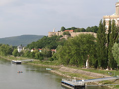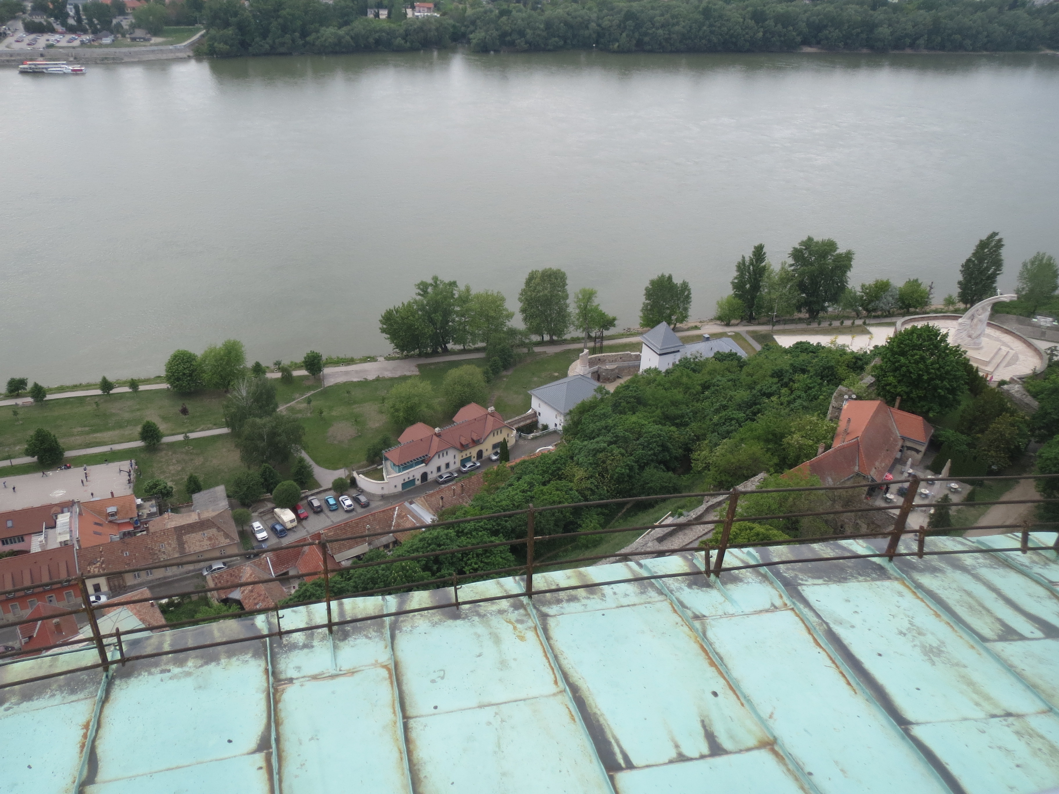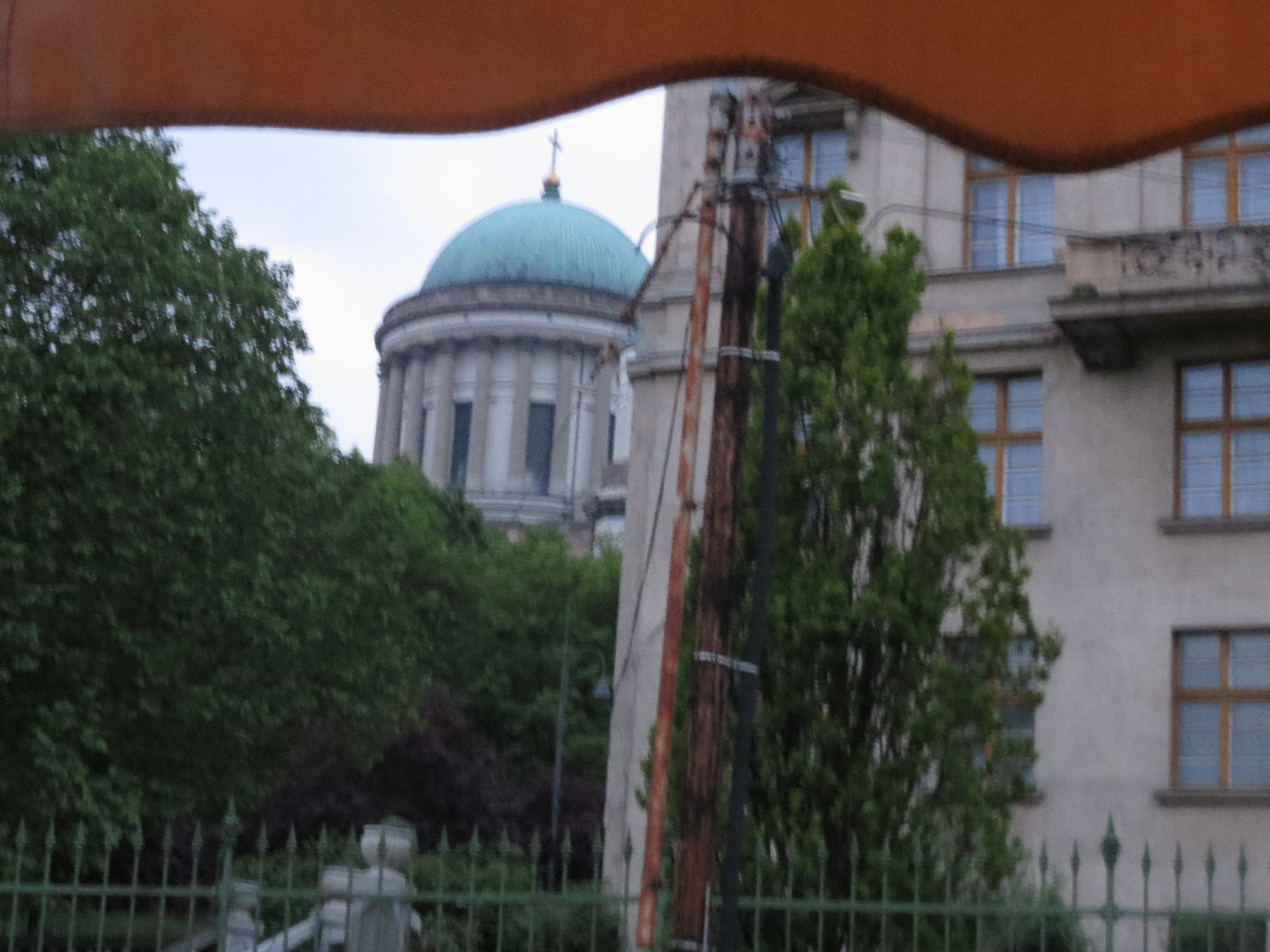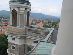 This was the only day of the trip that had any significant climbing, so i predictably took a zillion pictures of the view from hills. In the morning, we climbed from Tata to a Danube viewpoint, where we got a wine tasting and snack/lunch. Then we rode back down into Esztergom, a town with a very vertical center and an iconic basilica. Scott, Joe, and i took off right away to climb the basilica, then wandered around town, touring a disappointing museum (it had a few rooms of artifacts, but no labelling or other information). We walked across the bridge to Slovakia, then came back for dinner. The restaurant that had been recommended to us was booked for high school graduation, so we found another place near the hotel.