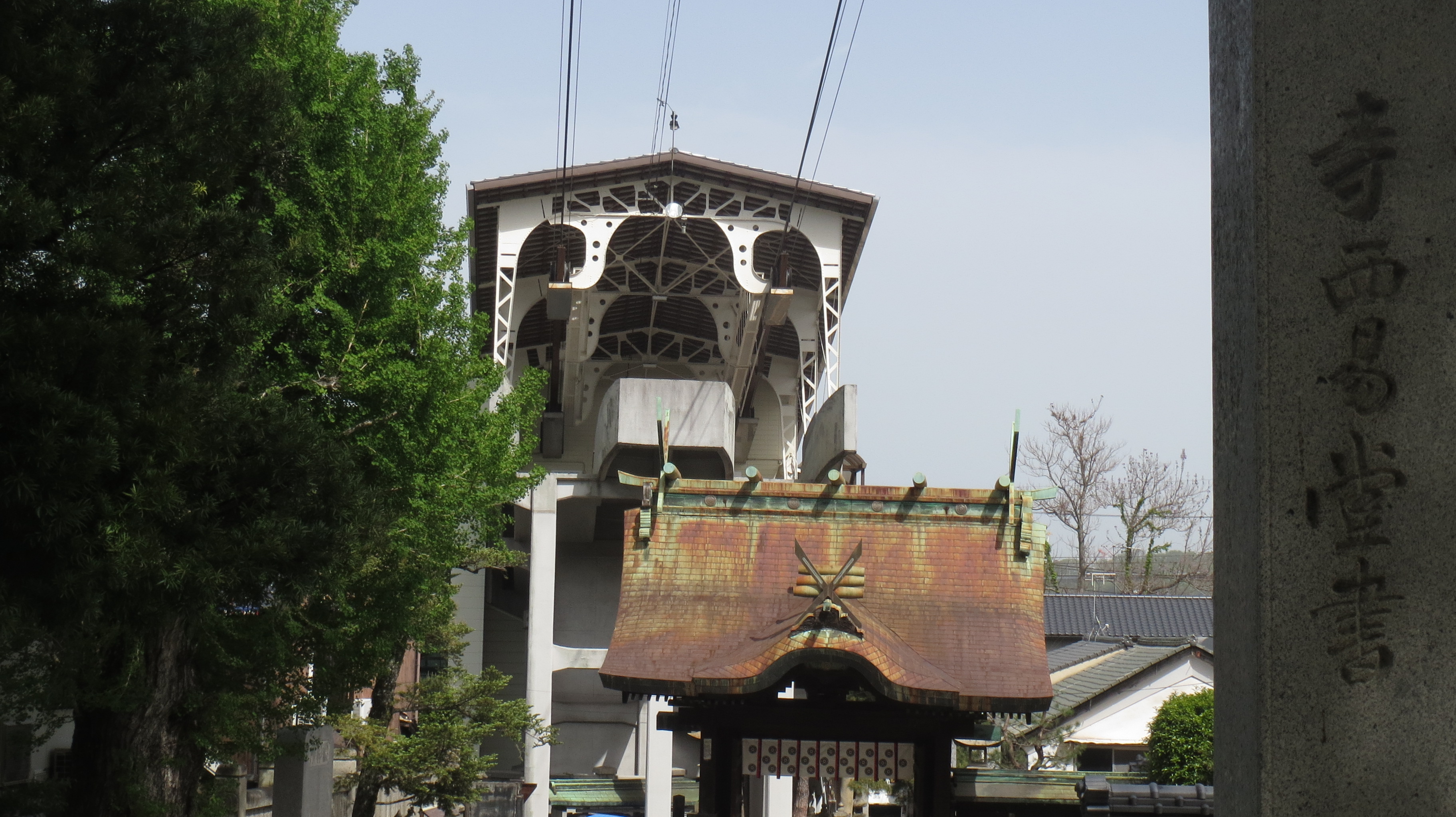 tree trimming in progress behind the shrine |