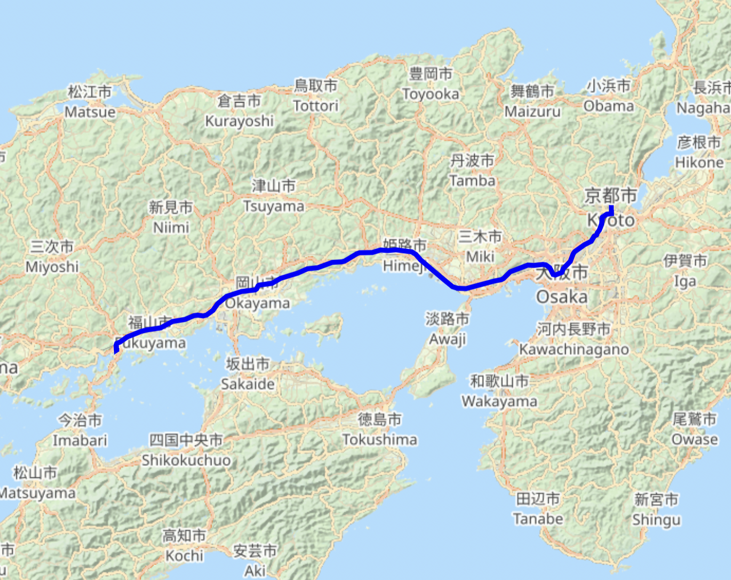 Kyoto to Onomichi (by shinkansen): we get up and head to Shin-Osaka, where we meet up with David and Tom and catch our second reserved shinkansen to go the 270km or so to Shin-Onomichi. At that station we meet our guide Paul and our van, and transfer to the hotel. Sarah and Dana take the local train directly to Onomichi, and meet us at the hotel.