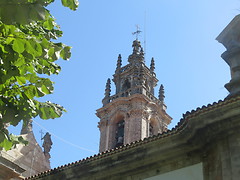 Peso da Régua to Lamego loop (36.7km, 678m of climbing): last day of riding! We were worried about this climb, and asked our B&B to serve breakfast early so we could hit the road before it got too hot. It was actually great, though, hard but not impossible, and we got to Lamego just before noon. In Lamego, we climbed hundreds of steps to a sanctuary, came back town and had a quick casual lunch, then found the castle, a 1000-year-old tower, before heading back. The ride back to our B&B was great, all downhill with good views. We had a quick swim, then repacked, and had our last dinner as a full group, at The River in Peso do Régua.