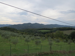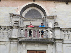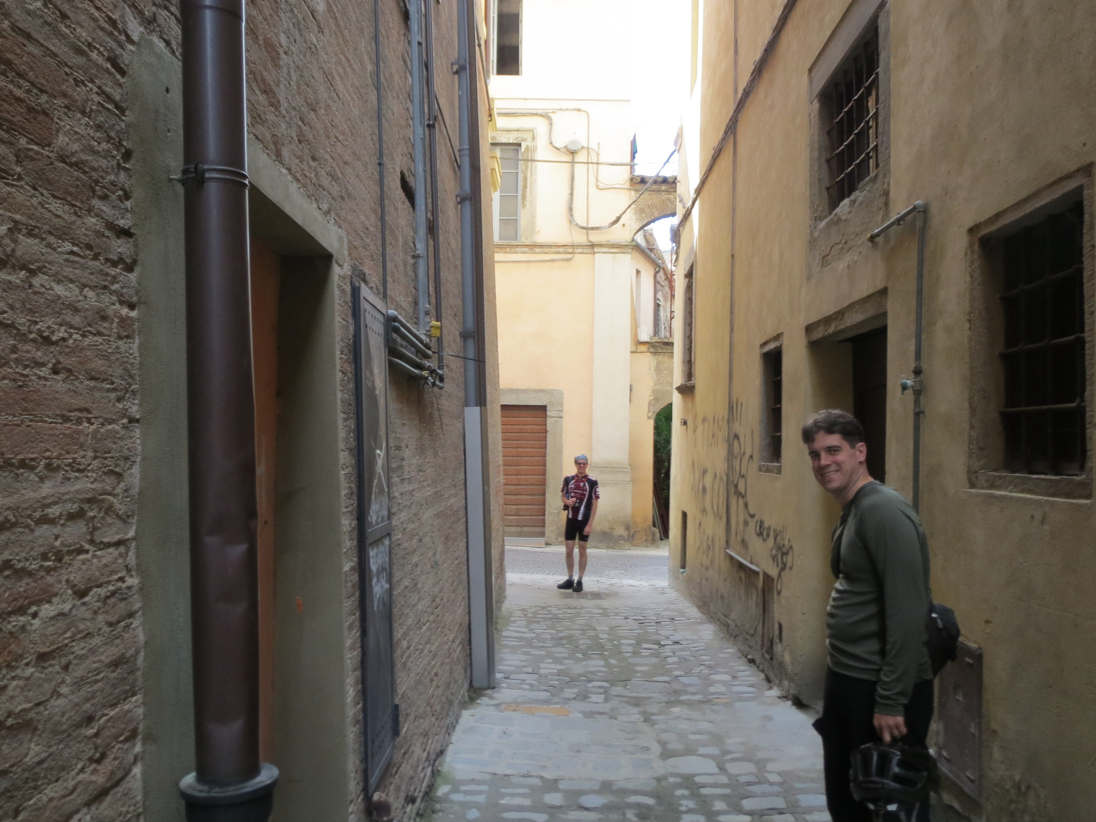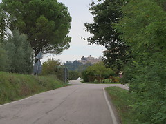 First day of riding! After a large buffet-style breakfast, we got a slow start due to meeting Giovanni again, checking out gear, getting water, etc, and eventually hit the road at around 10:15. All nine of us rode together in the morning through pretty country roads to Citta di Castello. After lunch, we split up: Joe, Bill, BDan, Scott, and i stayed to explore Citta di Castello a bit while the others headed straight to town. The ride to Montone started out as annoying highway riding, but near the end, we turned off onto a smaller road for the final climb into Montone, a gorgeous walled city up in the hills.
